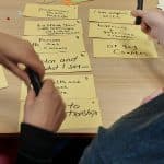 Participants were invited to go where there heart wanted them to and to work on these in small groups, with time to go and review the other questions before the end of the session. (there is a typed appendix of all the boards)